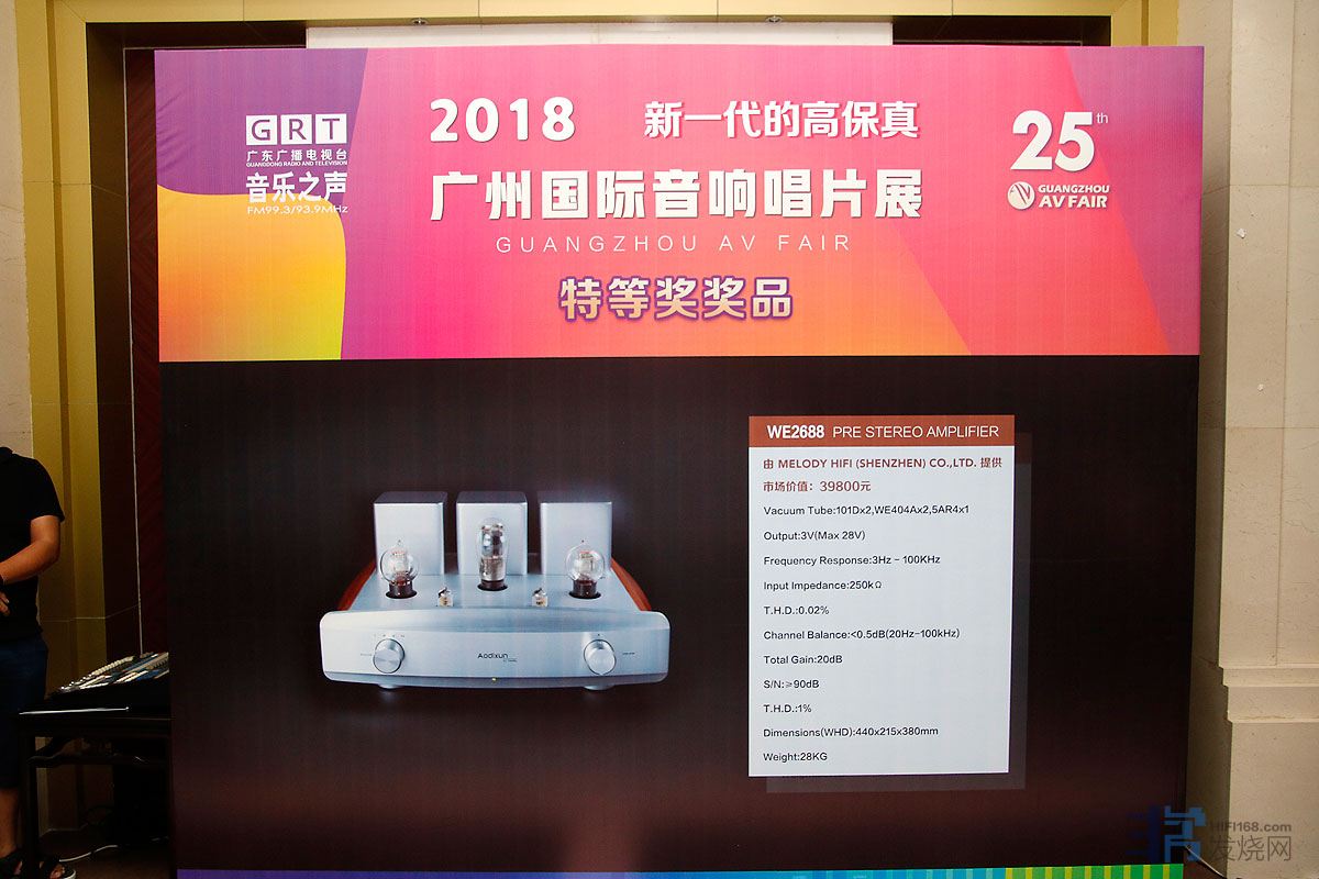 “2018广州国际音响唱片展”奖品丰富。主办方揭晓了本届展览的两组特等奖奖品,包括由麦力迪音响(深圳)有限公司提供价值¥39800元的Melody WE2688电子管前级。