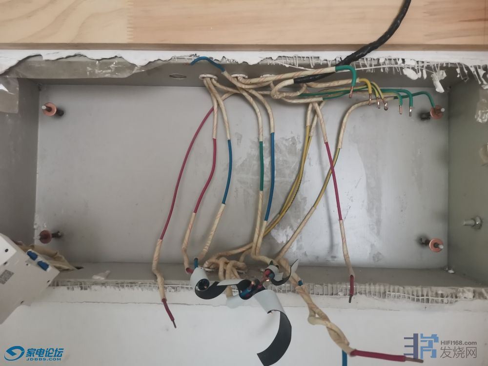 开始临时在墙壁上布线 因为古河电源线线太粗18毫米外径,德国蓝水440电源线16毫米外径