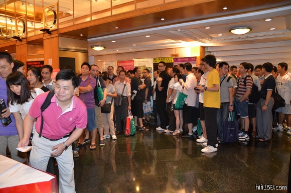 不知不觉,HIFI168十周岁了。今天来自全国各地的网友云集白天鹅。白天的展览刚刚结束,展馆外HIFI168的网友已排起了长龙等入场。我返回会场时刚过下午六点,已排在后头,头十名网友没拍到。