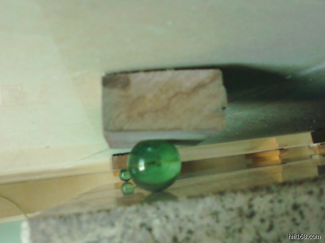 我的音箱用了两层小块木地板和水晶珠,中间用一块12厘米厚的花岗岩石板。一层在音箱下面,一层放在花岗岩板下面。