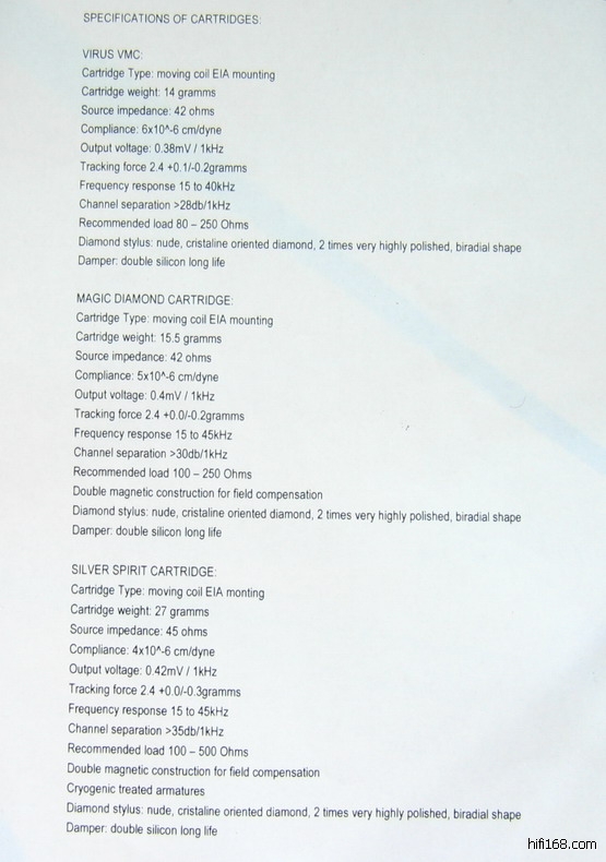 高度风ROHMANN唱头,输出0.25毫伏,阻抗6欧,针压2.2-2.7G[upload=jpg]Upload/200712522302813423.jpg[/upload]MC RONDO BRONZE(W30)唱头,输出0.5毫伏,阻抗6欧,针压2-2.5G[upload=jpg]Upload/200712522335092233.jpg[/upload]MC RONDO BLUE(W20)唱头,,输出0.5毫伏,阻抗6欧,针压2-2.5G[upload=jpg]Upload/200712522353079860.jpg[/upload]