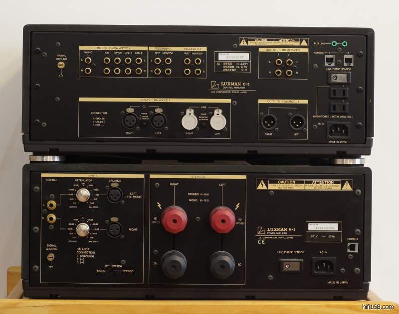 上海出LUXMAN(力士)全平衡前后级C-5及M-5,日本產,原裝220V,金色,全平衡。8欧每声道100W。此机全平衡设计,用料扎实,声音平衡、大气、音场宽广、外形专业。带原装遥控器。机器很重。成色非常好,无修无磨。我这里有后级的一些参数,供参考,前后级发售价格在人民币5万以上。由于搬家缘故,外包装遗弃。出让价格:22800元。接受小刀,接受淘宝。其实价格已经非常低了,看到过香港二手的出让价格在26800元。这个价格就可以玩上如此高素质的功放,还有什么理由不下手!联系电话:18 6216 10085.王。东西在上海。前两张是机器实物图,有超清晰大图,有意可留邮箱。后面的是在网上找了些后级内部图及参数供参考: