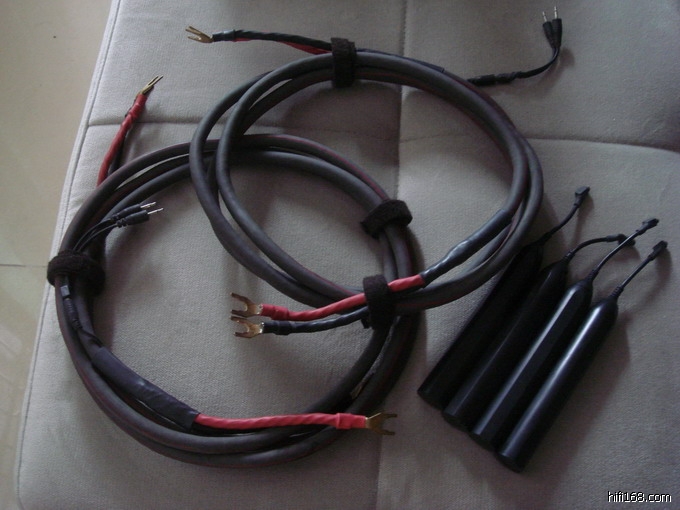 喇叭线已发给台山的一位烧友,本人承诺如不适合,收到线一个星期无条退货,搭配不合适也可以退货,当然运费自理罗,呵呵。线上的热缩管上有Audio Quest 和CV8的英文的,还有标注方向的箭头的。这点不用担心只是照相的角度,所以看不到而以