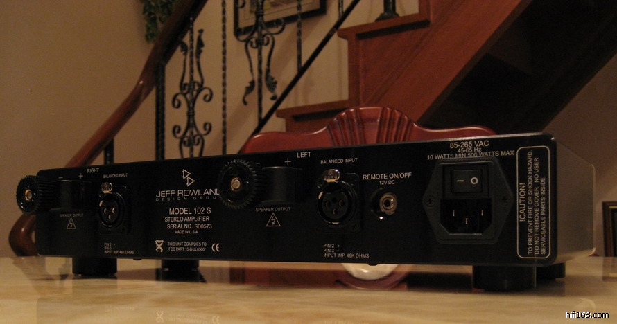 从技术数据中可清楚显示,Model 102后级分别于8欧姆及4欧姆的工作负载下,可提供连续性的2X100瓦及倍数的2X200瓦额定出力,峰值电流为11安培,动态范围达110dBa之谱!并能有效操控阻抗介乎3-160hms的扬声器之下提供稳定的工作性能与及理想的音响效果,而增益为固定的27dB。Model 102十分省电,最高耗电量只50W,闲置为1OW。平衡式端子极性为2正、3负;与Capri前级相同。不过这样的一部后级功放,却有着5Hz-65kHz-3dB的漂亮频率响应规格,动态范围达到110dB,lkttz时的阻尼因子高达1000,峰值输出电流更大于11安培,可见其推力之强劲!