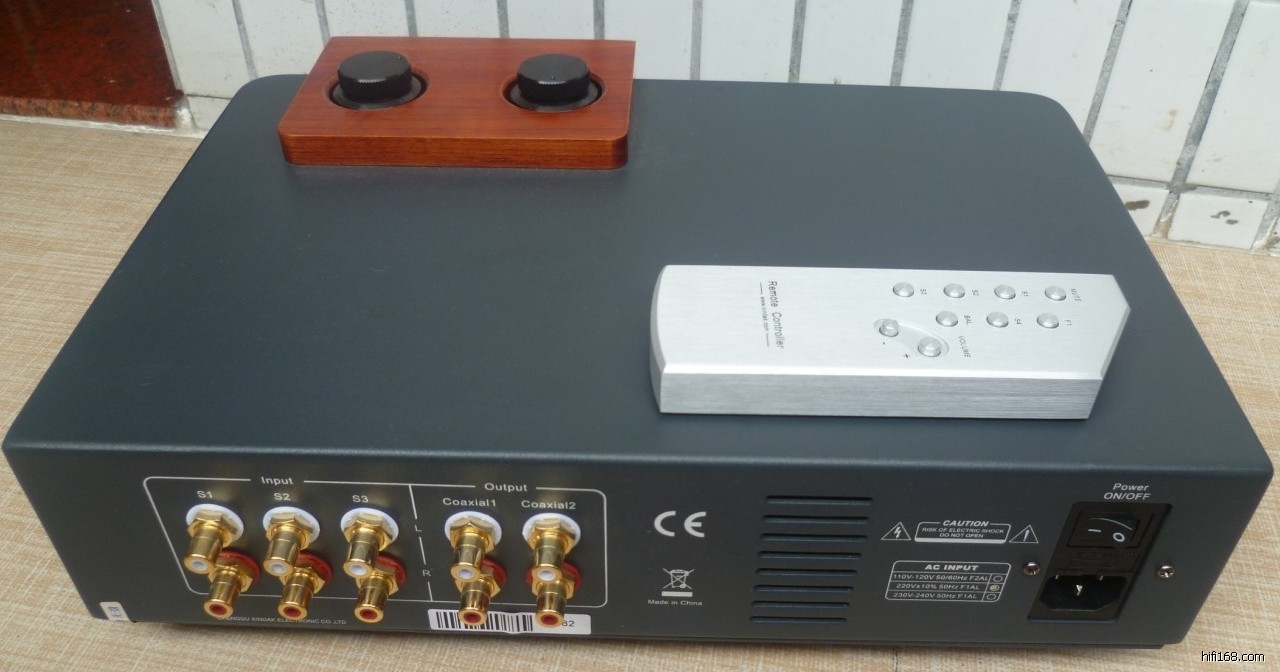 个RCA输入组和2个输出组。 还有一个很好的铝制遥控器,用于音量控制和输入选择。
