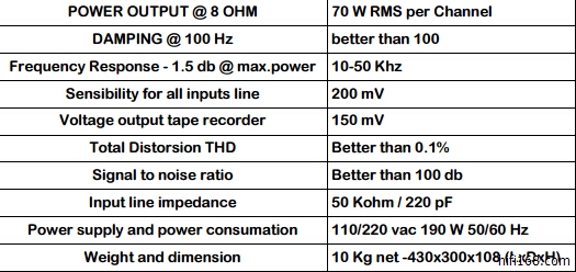 Frequency response linearity:20-20Khz +/- 1 db correct phase + output