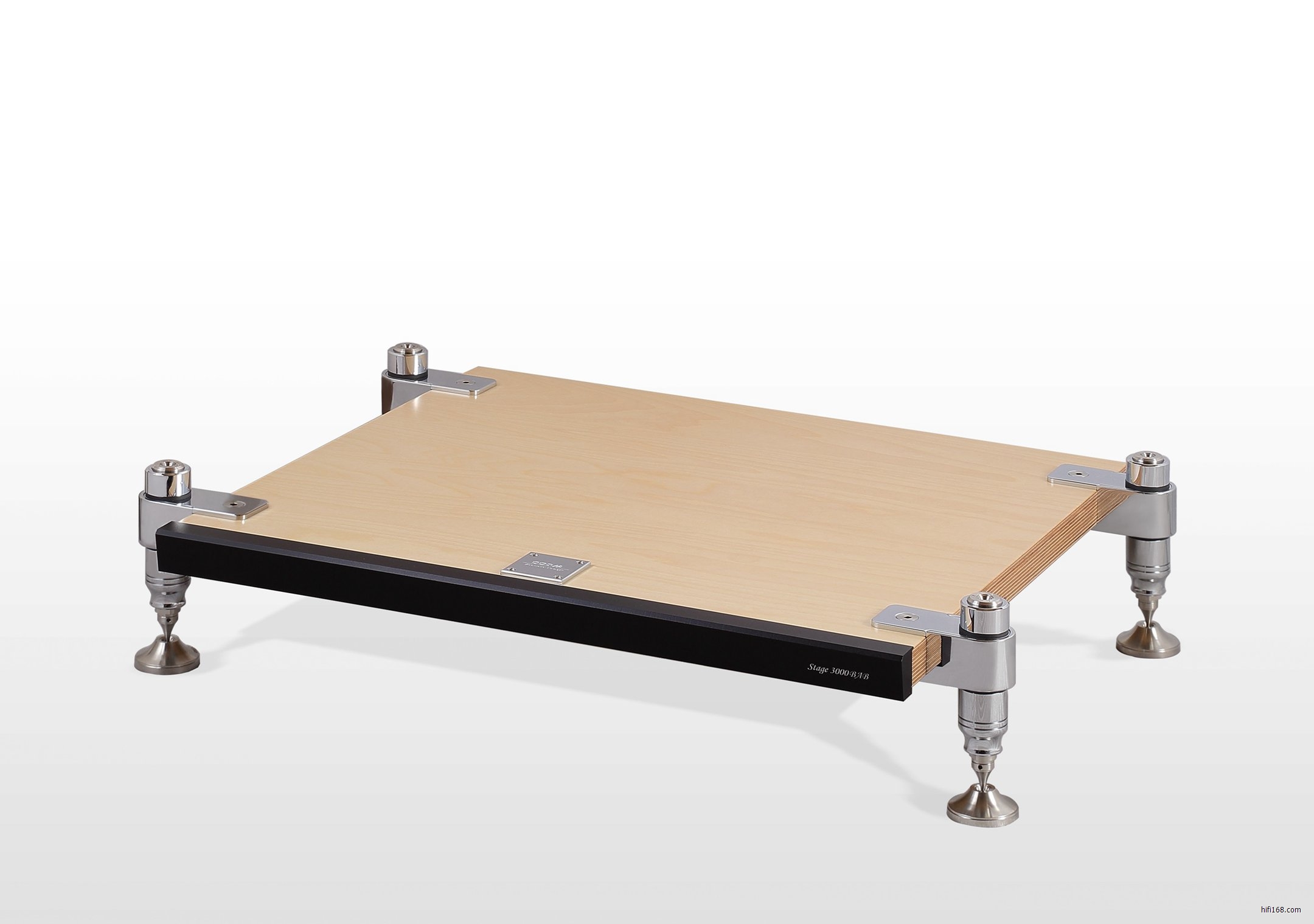 而我们现在迎进到国内的是Stage 3000BAB,这是该品牌最顶级的型号。每一层的立柱独立分开,用户可以随意搭配。立柱有黑色和镀锣两种选择,而层板的颜色有桦木本色,黑胡桃,纯黑三种。