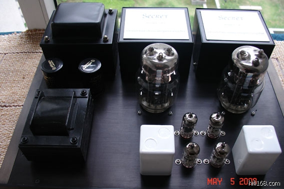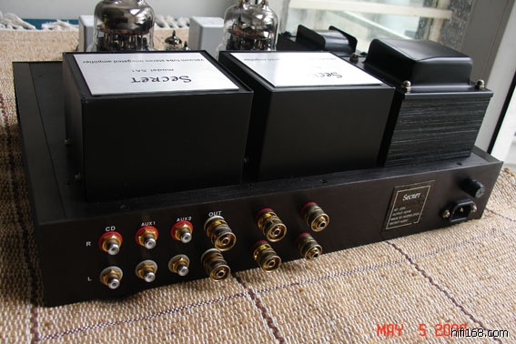 打开背板用料会把您惊吓到,英国JENSEN极品银膜电容四只及铜膜铝膜电容遍布全身,硕大的美国DALE钛合金军用抗高温极品电容(天价级的胆机上都不多见用)机上几乎布满各类DALE高档型号,以达到校声最高境界,黑金钢电容;阿帕斯电位器;喇叭接线柱和RCA信号端子高档用料都让人惊呆,就连保险丝都不放过,用的是进口最高档的银丝缠绕保险丝!