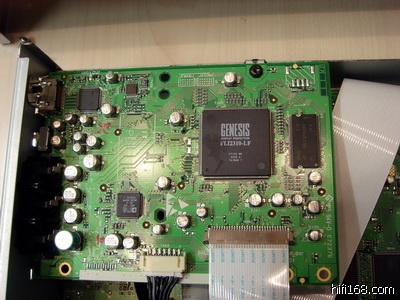 这个机器用的Genesis的视频处理芯片,其视频输出的效果是相当好的,毕竟是上一代的顶级机种。它的音频、视频以及倍线线路都是独立的线路板,音频部分每个声道都是用的分立元件。偶手头有一台980块的飞利浦5996DVD,视频、音频和控制线路都在一块很小的线路板上,用料只有DVP9000S的1/10。