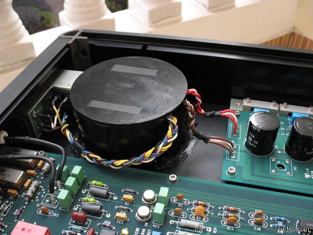 原装环牛因为成本所限没有屏蔽罩,自己找人定制了一个厚3mm的带盖喷漆镀锌铁罩,用玻璃胶粘上底板加绝缘胶固定,里面离环牛有5mm间隙,可轻松拆卸,对机器完全没有外观损害及实质影响。对比加之前声音改善比较明显,主要表现在解析度更高,泛音充足不少,音乐线条更清晰生动。不明白为何如此简单低成本的设计wadia硬是没有做,对比他家高端机器做隔离不惜重本,是不是怕中档的做好了影响到高端生意呢?