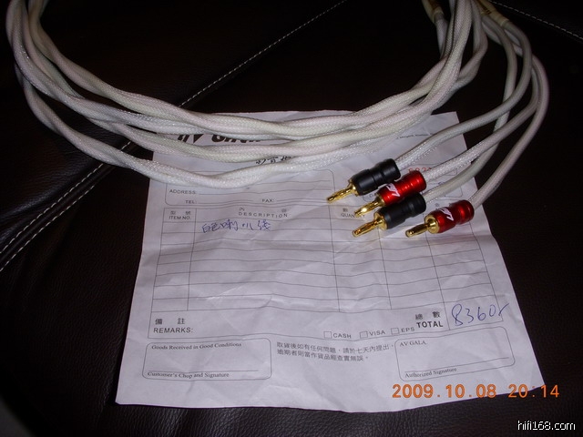 该喇叭线购于8月份的HK音展会里,原价800元,据说系音展速销,故半价后再打9折以360元买入(可看发票)。因为本人已转玩双后级,现时又无机会再去HK买多一对相同的,而且又已经买了两对线,所以将其售出,望识货之士收留。