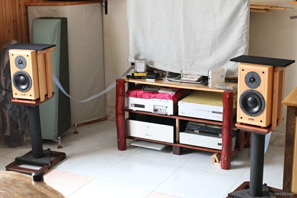 北京出一手自用dynaudio contour 1.3 MK II,别超行货。雀眼枫木皮,原包装、证书齐全。实际听音时间少于2000小时,状态极好,保护极好,无修摩,外观、喇叭等与全新的无异。可奉送精心改造铁木混合结构(“虚4脚”)脚架一对(有护栏防猫之类,见下面图图)、抗静电布音箱保护罩一对。本人甚喜欢此箱,因东西太多家里空间不够,现愿转让给自用者。¥10000(已降价不大刀了)。声音就不多说了,权威评价见http://www.stereophile.com/standloudspeakers/333/index4.html