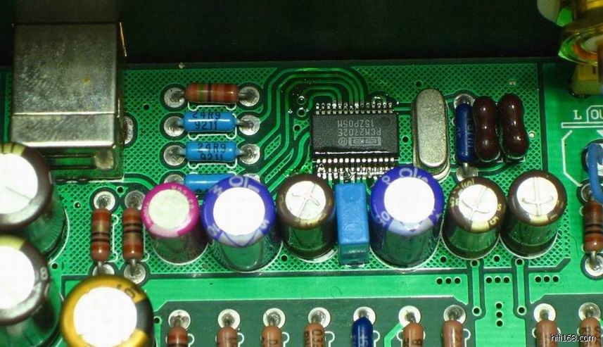 4:支持即插即用的pcm2707 usb芯片为接收电脑数据,直接传输给PMD100经典数字滤波芯片,PMD100芯片价格很贵,去淘宝搜一搜便清楚了。光纤同轴数字接收芯片用目前最好的dir9001。使用两片pcm 1702解码芯片。