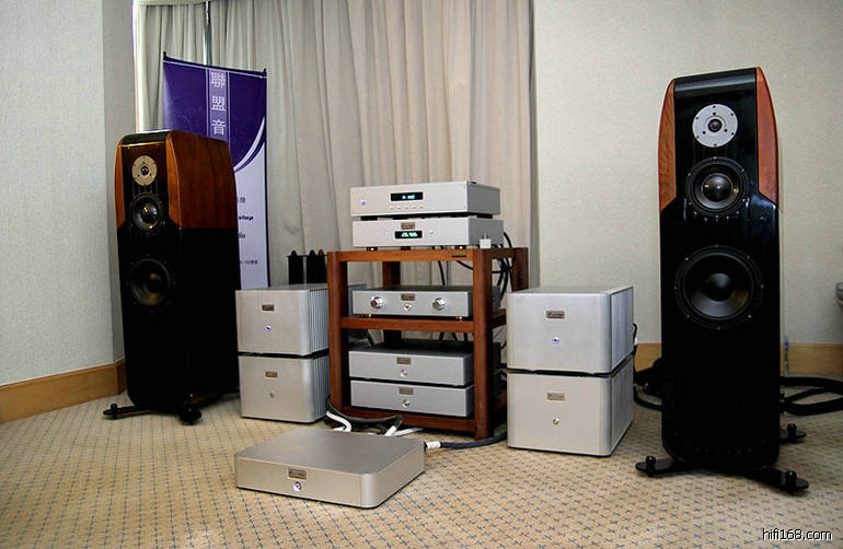 器材产品是联盟音响的自有产品。转盘、解码是电源分体,平衡版本前级、 单声道后级X4