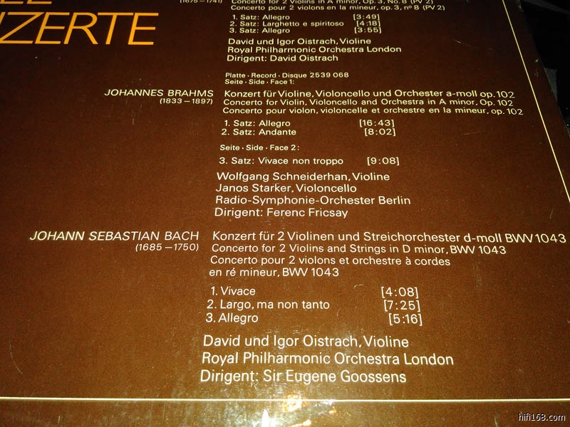 巴赫小提琴协奏曲三首,伊戈尔·奥伊斯特拉赫,德国版,封套NM,碟片NM,立体声,90元
