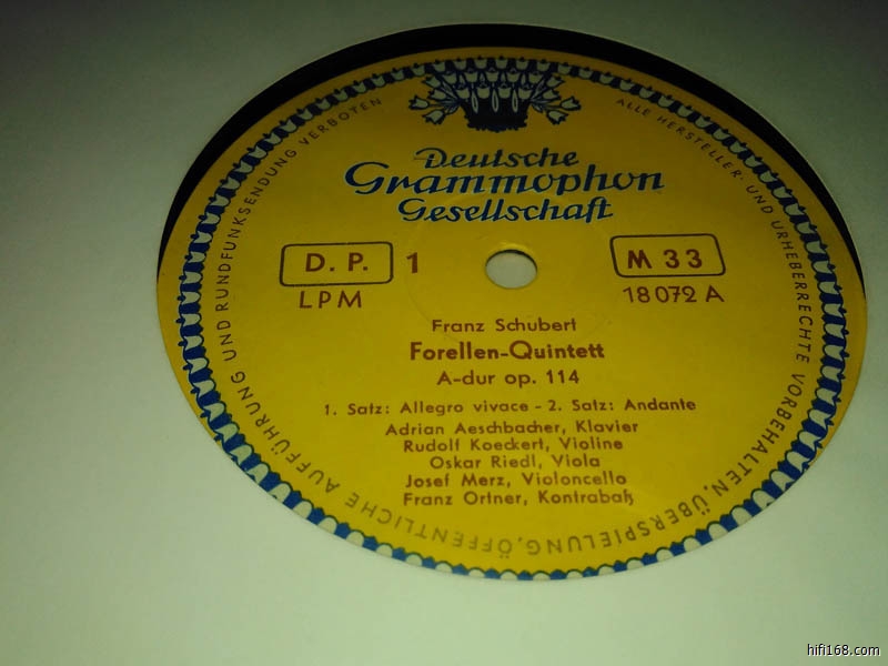 舒伯特-鳟鱼五重奏,德国版,大禾花,单声道,封套NM-,碟片NM,100元