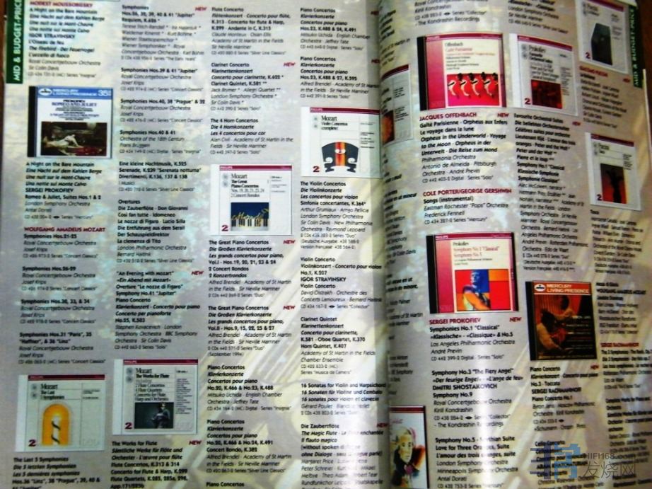 [font=仿宋_GB2312][size=5](1)[b][color=#ff0000](极其罕见)1994-1995年飞利浦唱片旗下古典作品目录[/color][/b],共127页,16开(即A4大小),包含飞利浦及旗下品牌主要艺术家的相关古典音乐出版品目录(阿劳、阿巴多、阿卡多、美艺三重奏、伯姆、里赫特、布伦德尔、多拉蒂、科林·戴维斯、捷杰耶夫、克莱默、海汀克、格鲁米欧、谢霖、穆洛娃、马里纳、穆蒂、哈丝姬尔、马舒尔、瓜奈里四重奏、意大利四重奏、内田光子、祖克曼、小泽征尔、普列文等),封面、封底及内页等内容见下图,从第2页至第85页,每页12张唱片正价唱片,共约1000张左右,极具收藏及参考价值,品相为92成新,400出。([color=#ff0000][b]或上方购碟满2500元,加150元即可换购[/b][/color])。[/size][/font]