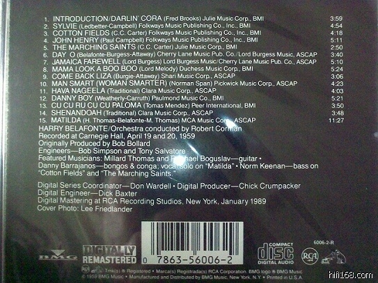 [/size][/font][font=宋体][size=12pt]本辑乃现场演唱专辑的最佳范本。1959年,与猫王齐名的伟大黑人歌手、卡里普索即兴歌曲之王贝拉方特,在47人编制的大乐团伴奏之下,于卡内基音乐厅展现其南方民歌、世界歌谣及加勒比海风情的毕生名曲,以精湛的演出征服了纽约。而负责本专辑现场录音制作的Bob Bolard表示“麦克风很机灵地在适当位置、适时时机出现,捕捉住舞台表演者演出精髓的现场录音,真是少之又少,而这一张却是万中选一的极品。”历年来专辑荣誉无数:CD圣经上榜天碟!美国TAS榜单唱片!《音响世界》十年十佳西洋流行音乐唱片等!成为音响发烧友们争相传颂的测试人声定位的经典之作。