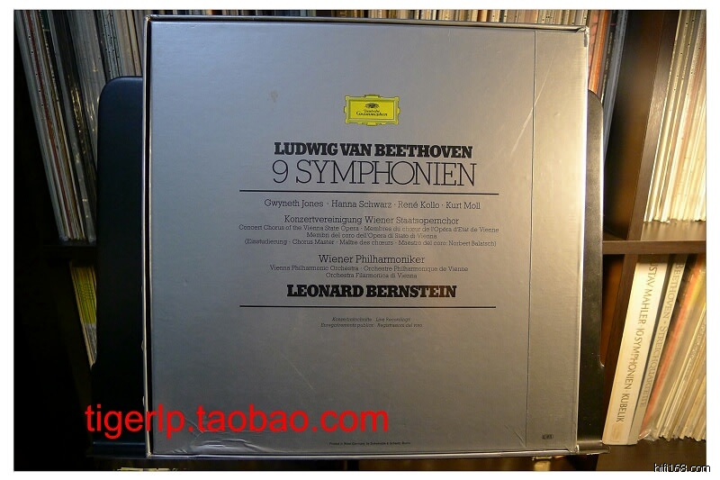 002 伯恩斯坦指挥维也纳爱乐演奏贝多芬交响乐全集,DG出品,8LP。 封套玩好,反面封底边有小皱纹,唱片状态玩好 NM。