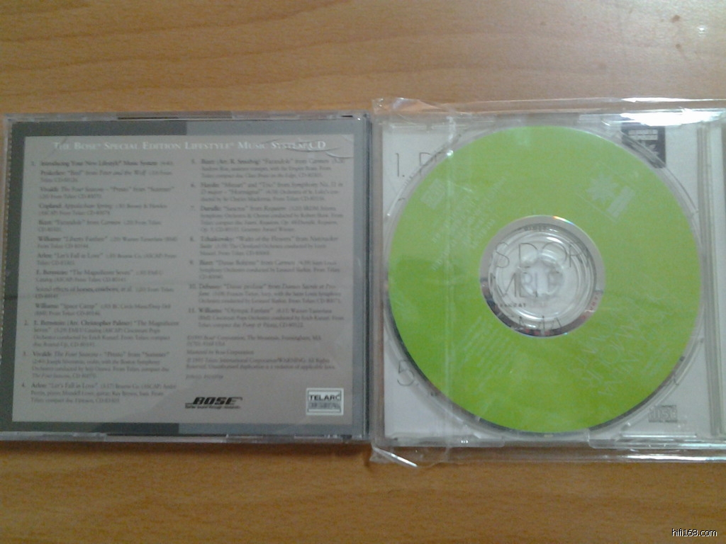 2、BOSE试音碟,BOSE公司在telarc公司的试音碟,封底显示11首歌,可是我没BOSE设备,放进普通CD机显示9首9种语言的说明,播放完就没音乐,不知道是不是我播放的方式不正确,碟几乎全新   70元