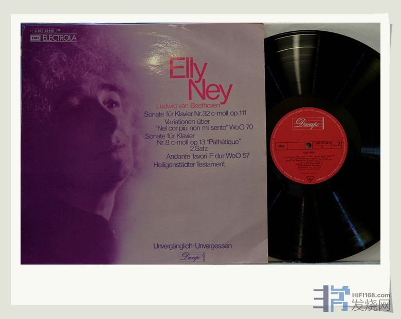 3、艾丽.奈演奏贝多芬《月光奏鸣曲、热情奏鸣曲》,12英吋黑胶LP唱片,唱片品相:NM-;封套:正常使用痕迹,德版