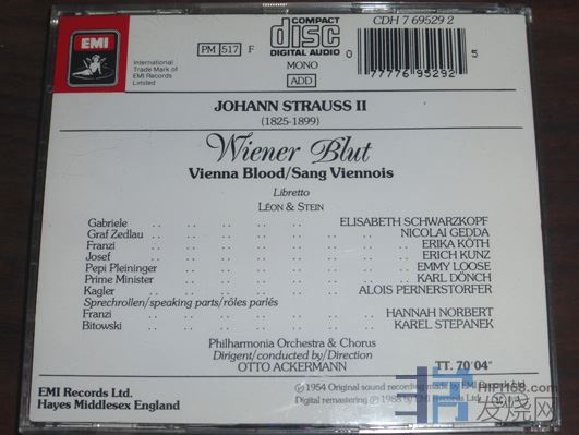 74.小约翰施特劳斯轻歌剧《维也纳的气质》,施瓦茨科普夫50年代单声道名版,德国SONOPRESS无码,小册子右边有两处卡齿印,其余基本OK 80元