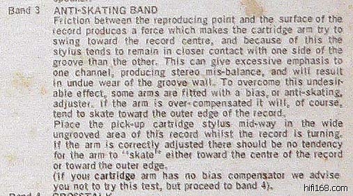 在这个声轨里面,是没有唱槽的光滑表面,把唱针调到适当的唱重之后,把唱针放到这个光滑表面中,调整偏压,当唱臂不偏向圆心或走向圆周,这时就大功告成。