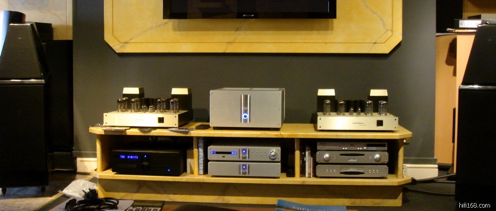 大厅正中就是一套主力演示系统:Krell Evolution系列的CD机和400瓦的前后级,音箱是Wilson Audio Watt+Puppy,线材是全套Transparent Reference系列的信号线、喇叭线和电源线。