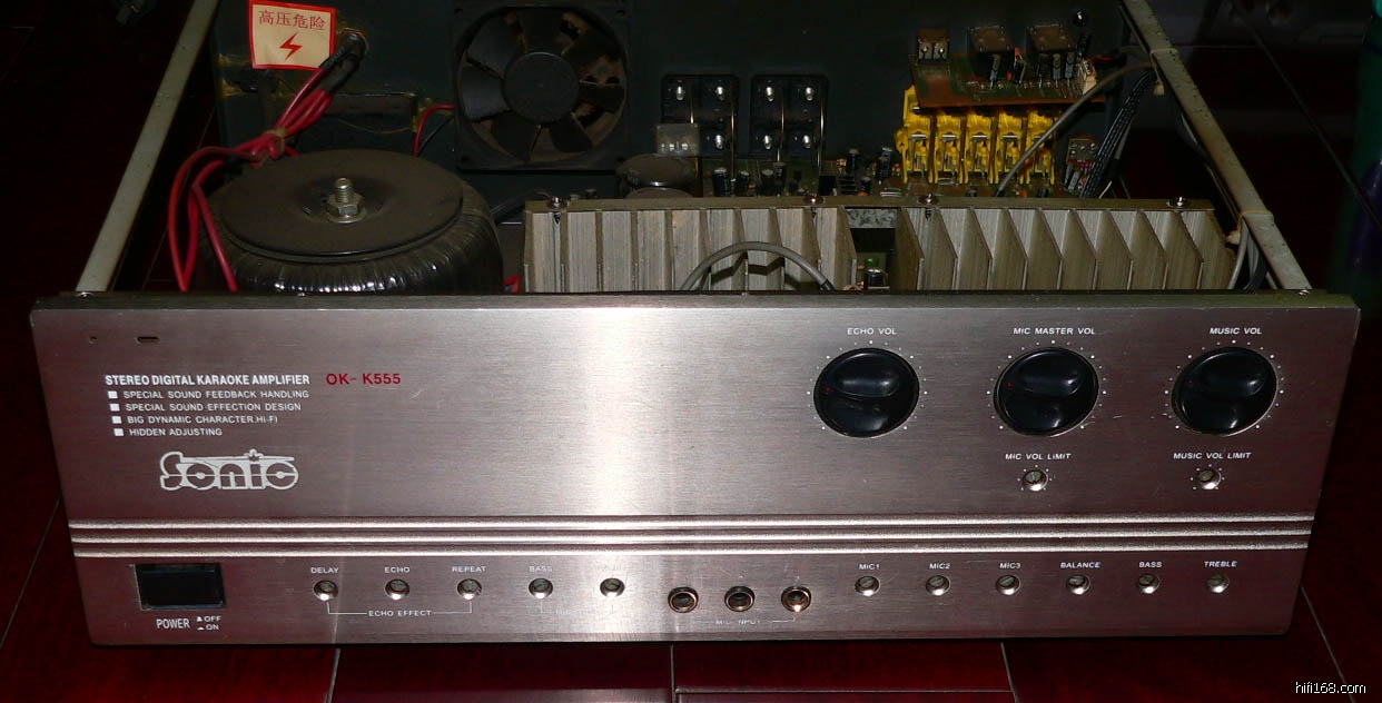 得到二手功放一台(型号:sonic ok-k555) 二手音响一对(型号:DOMUS PRO-20V) 请各位专家帮我鉴定真假