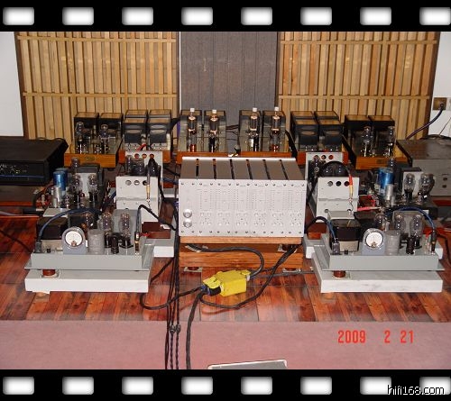 主人家的音源是四合一的DCS    SACD机,音质方面的质数不容置疑,两机都是直入一台带切换开关的多路电子分频机中,PK转换时随时方便切换选择.