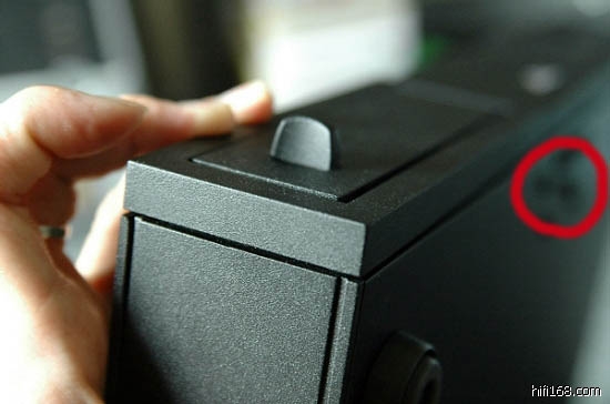 图二可以看出,面板是松的,顶部可以用手按下,按下后碟仓与面板可以保持水平了。但是底部这边是按不下去的,看来面板的固定螺丝在机底部。