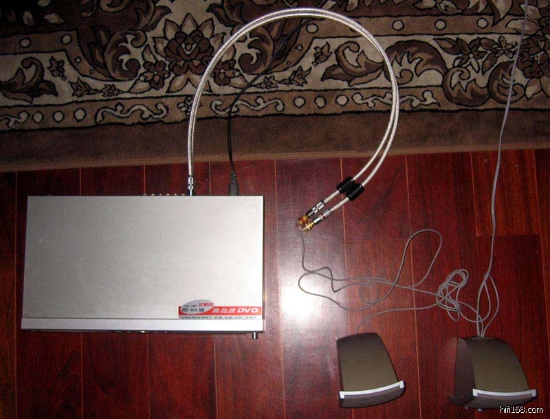 为了给刚刚入手的欧亚得910信号线热身,本人找了个在家闲置N年电脑有源喇叭,估计外面5块钱都没人要的那种,哈哈,然后自己焊上一对RCA输入头子,拿家里那台工作了7年都没任何毛病,但被我儿子折磨得不成“鸡”样的国产DVD当音源,然后接上910信号线,开始了残酷的煲线,24小时轮番轰炸,反正音量开得很轻很轻,让他好好Run in一下,待100个小时后再拔下来听听。哈哈,快乐发烧。