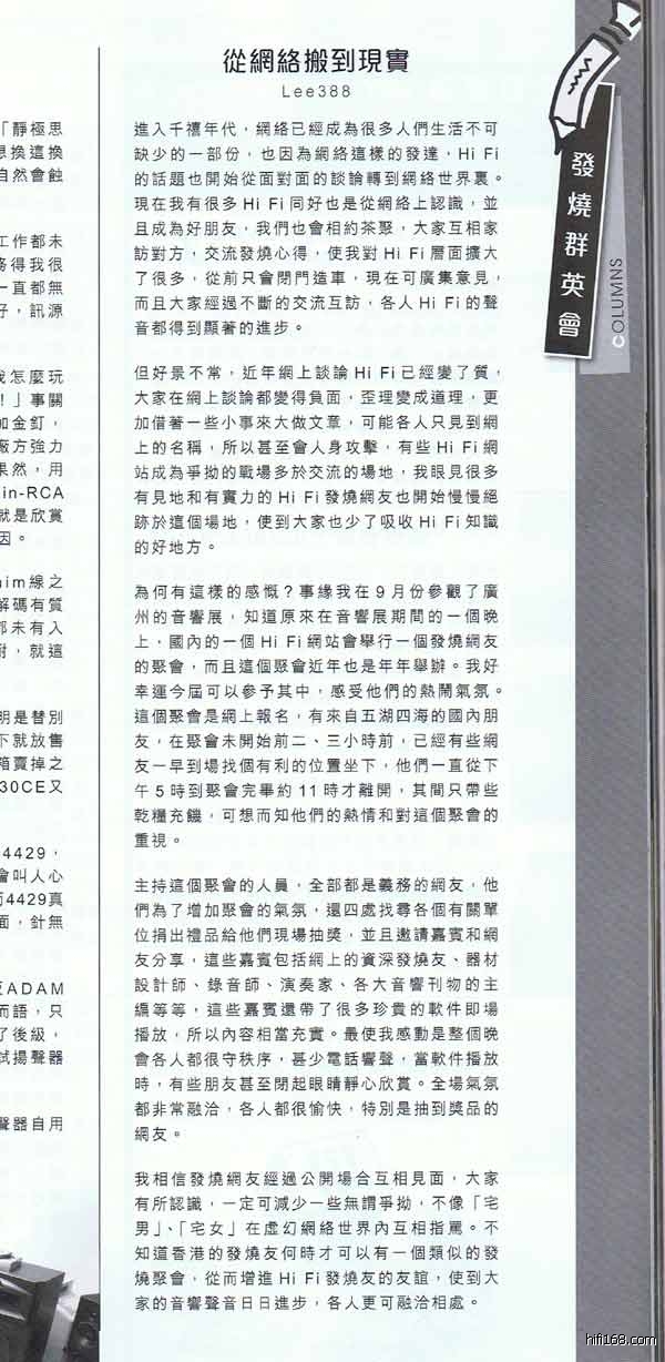 香港《音响技术》杂志10月刊报道非常发烧论坛白天鹅音响展网友聚...