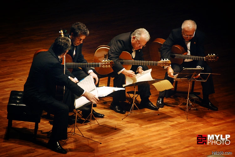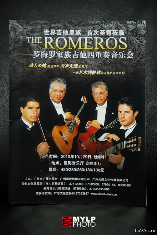 为啥叫“又见”呢?因为一年前,09年10月16日,佩佩·罗梅罗他老人家单枪匹马来广州开独奏音乐会,俺去了,当时就有个心愿:如果他们家族四重奏都来了多好啊。想不到一年后,这个愿望就实现了!昨晚,新一代的罗梅罗四重奏终于来了,这是当今最顶级的古典吉他四重奏组合,岂容错过?!