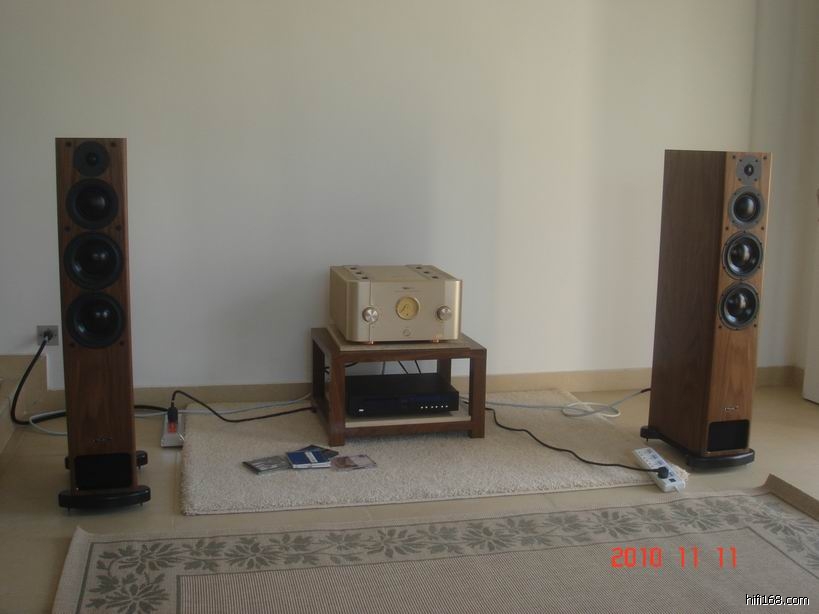 朋友头脑一发热,花费近6万元在典雅花园买了PMCpb1i落地箱,用原来使用的广州番禺产的丹麦皇冠合并功放(好像是甲类的,比较大块的,价格也近2万元)来推,CD机用美国加利。