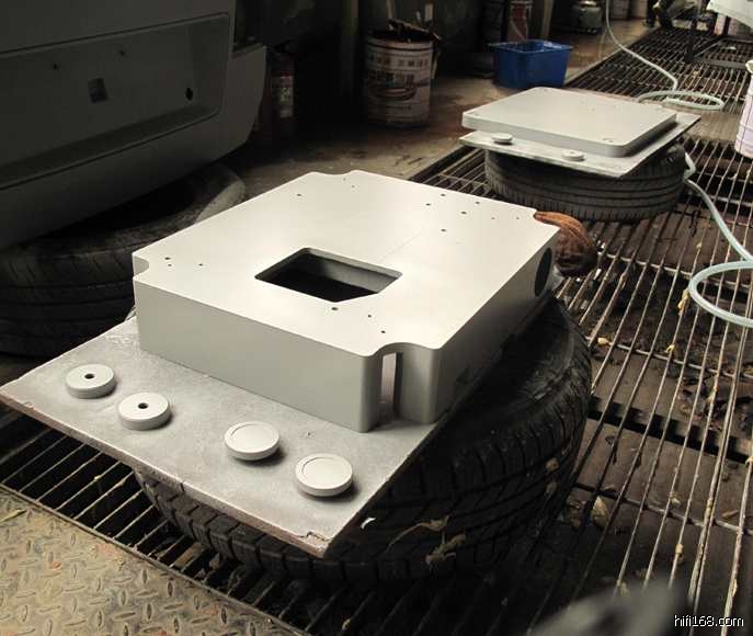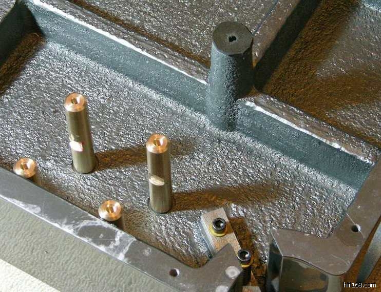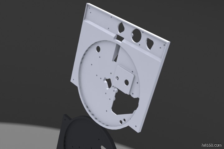 所以,在下设计401的底座是也采取了同样的原则:大重量、低重心、钢板弹簧悬挂,而将被发烧友诟病最多的401的“体积、噪声巨大的”电动机从其面板上分离、通过3个立柱固定在作为基座的底板上。其间得到了luss兄宝贵的THORENS的REFRENCE的拆解资料图片和Richard老弟宝贵的建议。
