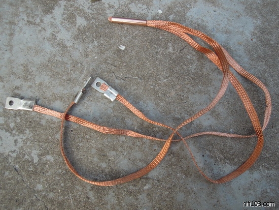 采用3条紫铜带包裹6平方地线,用紫铜管压牢固定!