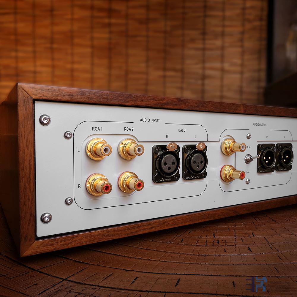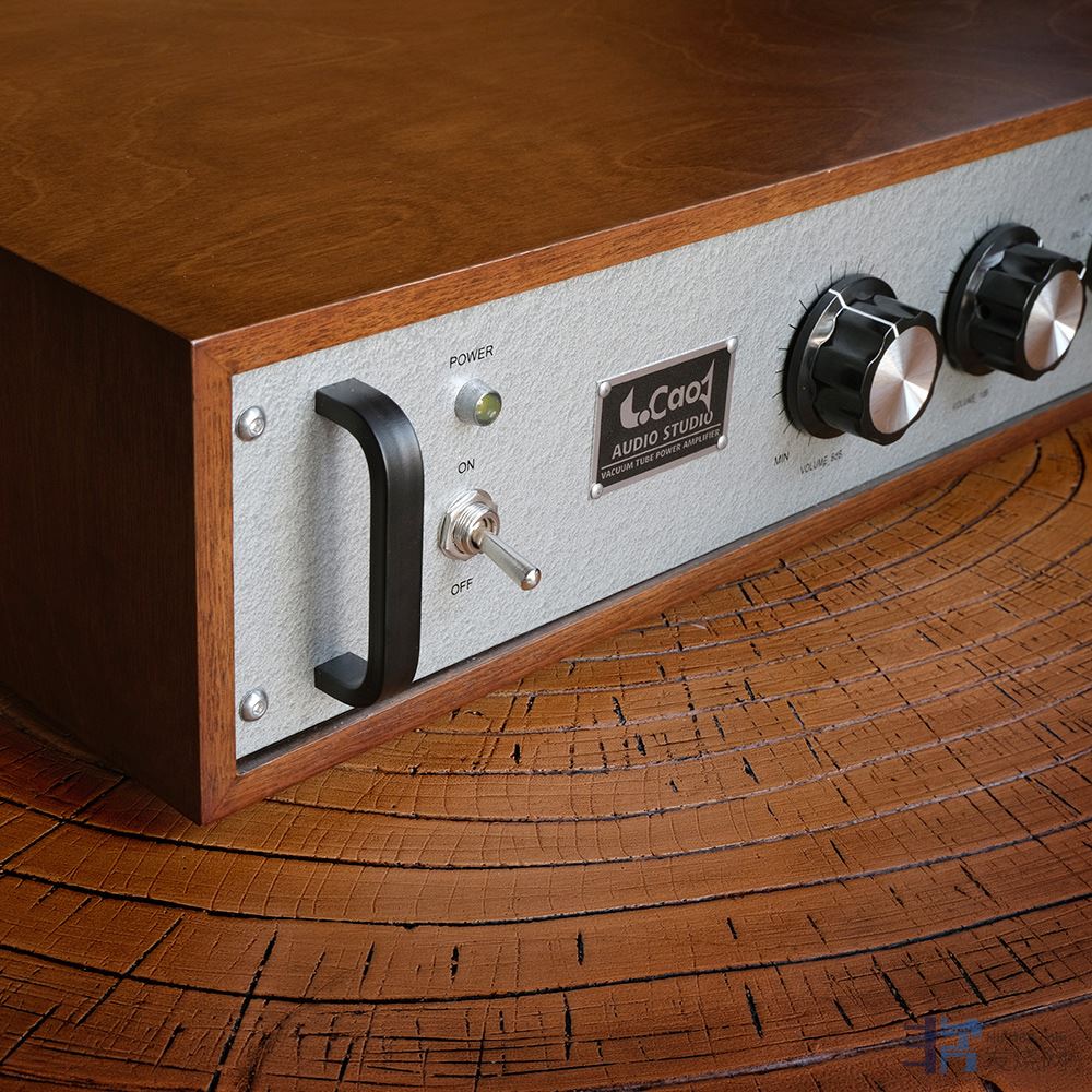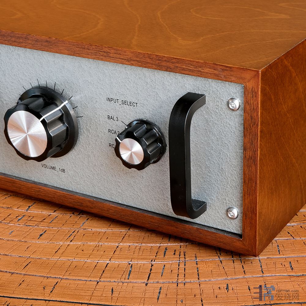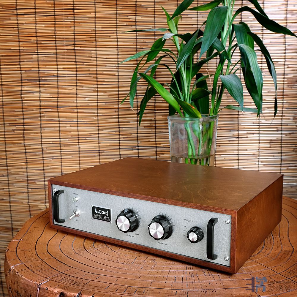 这台胆前级的外型有别于传统的胆机,牛与胆管都藏在机身里了,不过外观又很复古很有“胆味”。金属机身外包木框,面板采用了锤纹漆工艺,加上复古的元部件,散发着古典工业时 代的气息。