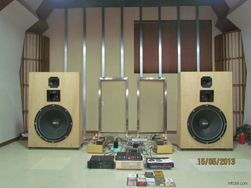 经过昨晚的一役,完全改变了我以往对大障板式“音箱”发声的成见以及认知……想不到36吋励磁超大低音与大障板的结合会有如此的融洽和惊喜!……同时,亦破天荒的将番禺何工所制作的DIY36吋超巨型励磁大低音单元和号角中音以及号角式高音三者完美的结合在一起,构成一个和谐的三路三分频三单元电子分音障板大系统。