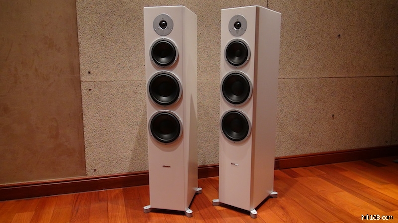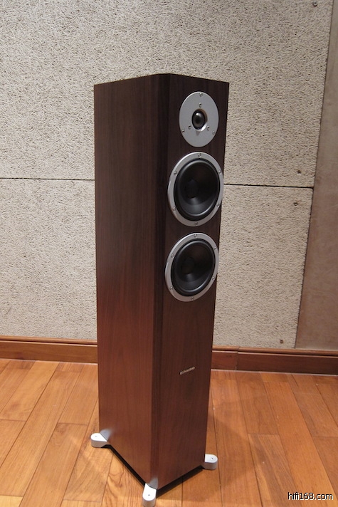 从外观来看,New Excite系列的前障板不再是分离的纯灰色障板,而是和箱体合为一体,变成单一的完整音箱,而且边角依然有倒角,增加了制作上的难度。另外,New Excite系列的落地款喇叭都有全新的实铝角座,角座下方再锁上角锥,更添产品的高质感。