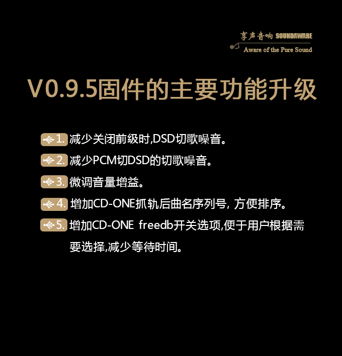 CD-ONE作为由发烧友提起,由发烧友推动的一个产品,经过享声接近一年的固件研发与众多发烧友联合测试,终于推出的一款成品,希望能成为连接CD发烧友与数播的桥梁。