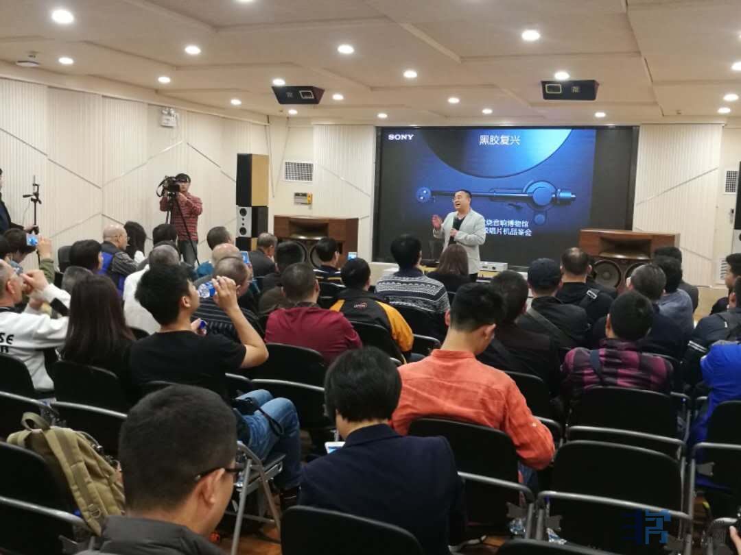 欣赏过数首经典音乐之后,索尼公司的杨勇先生进行的索尼黑胶技术讲解更是吸引了大家的高度关注。据了解,这台唱机采用一体型结构加强唱头,提高对唱片拾音的精确性,获得良好的声音,机器的圆形唱头保护壳,避免角部共振,减少对音色的影响,与此同时为保持拾音的稳定性,厚达约30mm的机身采用音箱用的中密度纤维板材质,在偏离机身中心安装特别形状的脚钉,让我们在欣赏黑胶的过程中更流畅。杨勇先生将这些产品特点一一道来,详细而生动,让大家对这台黑胶唱机充满兴趣,跃跃欲试。