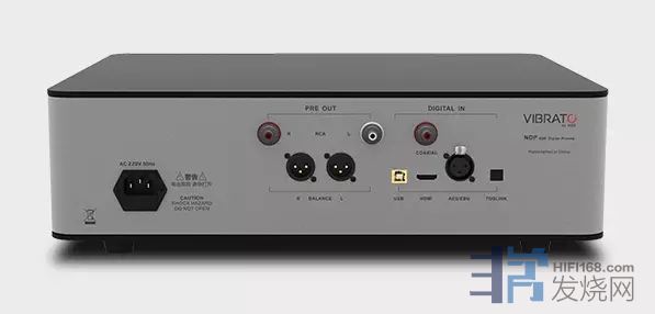 VIBRATO NDP是一台完全摒弃模拟输入的前级,音源全为数字化,理论上它就是一台高素质的解码器,对它来说解码的素质相当重要。可以说这是一台解码功能相当完备的数字前级,它可以实现DSD信号的硬解,它有高素质的模拟前级放大器,另外它还具有耳放功能。VIBRATO NDP可以搭配同级别的后级放大器,也可以搭配高素质的有源音箱,组建Hi-End级的音响系统。