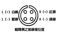 另外,唱头导线也在此时装上。左图的接线位置是唱头盖旋开之后,从唱臂侧观看的样子,只要找出对应的接点就可以了。