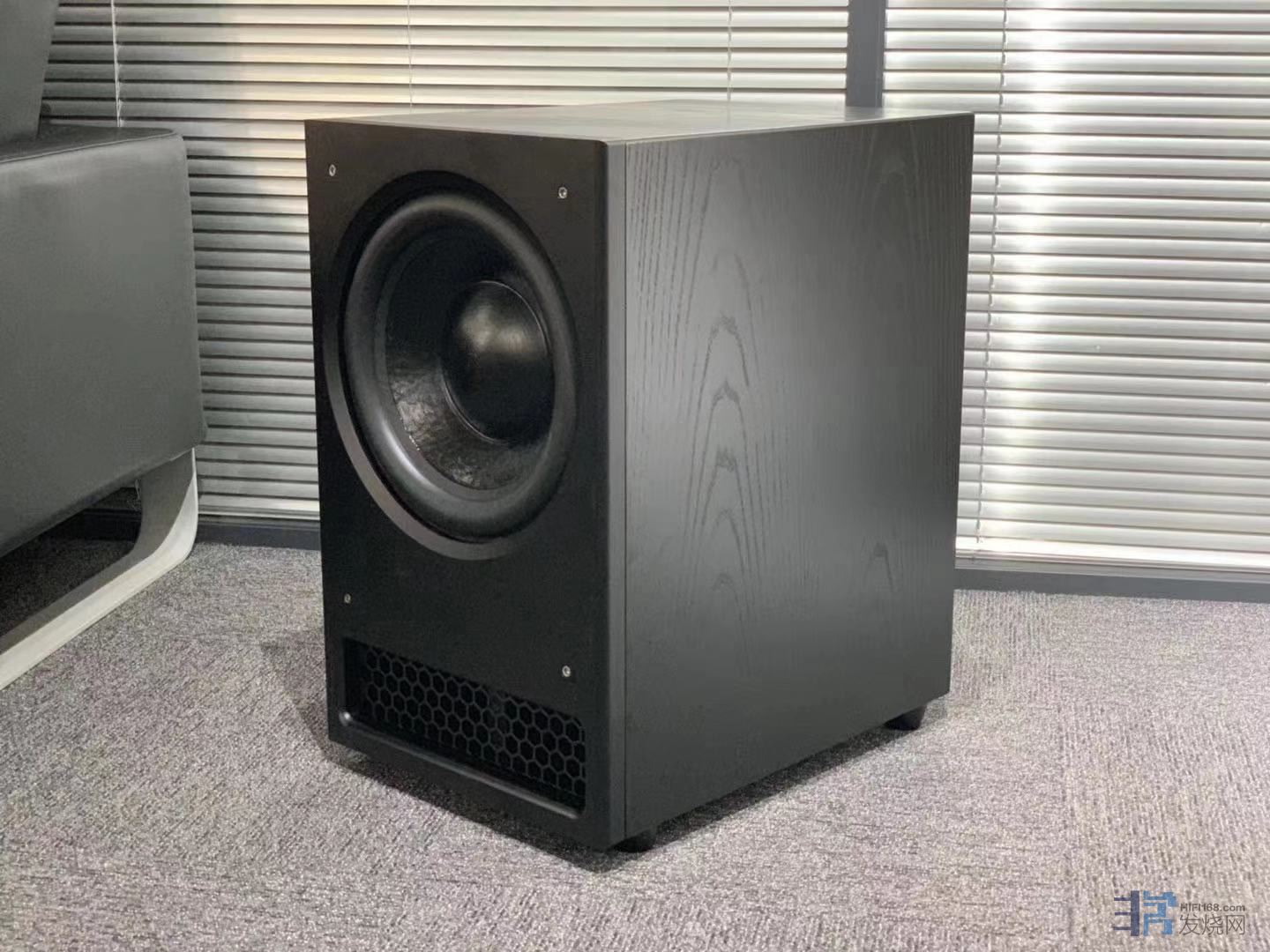 刻意打光把哑光的木纹现出来,毕竟是奔着最好的那个金字塔顶端去的产品,外观也很重要!虽然单元只有12寸,但是120dB/30hz的最大声压可不是一般的15寸低音能发出来。