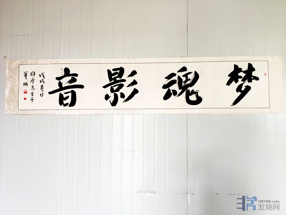 第二天一早,李老亲自来迎接我,把我带入了一个偏僻的民宅中…… 房地产的上涨,真的给做HIFI实业的人太大压力了。进屋就看见李老的公司名的墨宝,以个人的对书法的理解,估计是李老朋友的墨宝。
