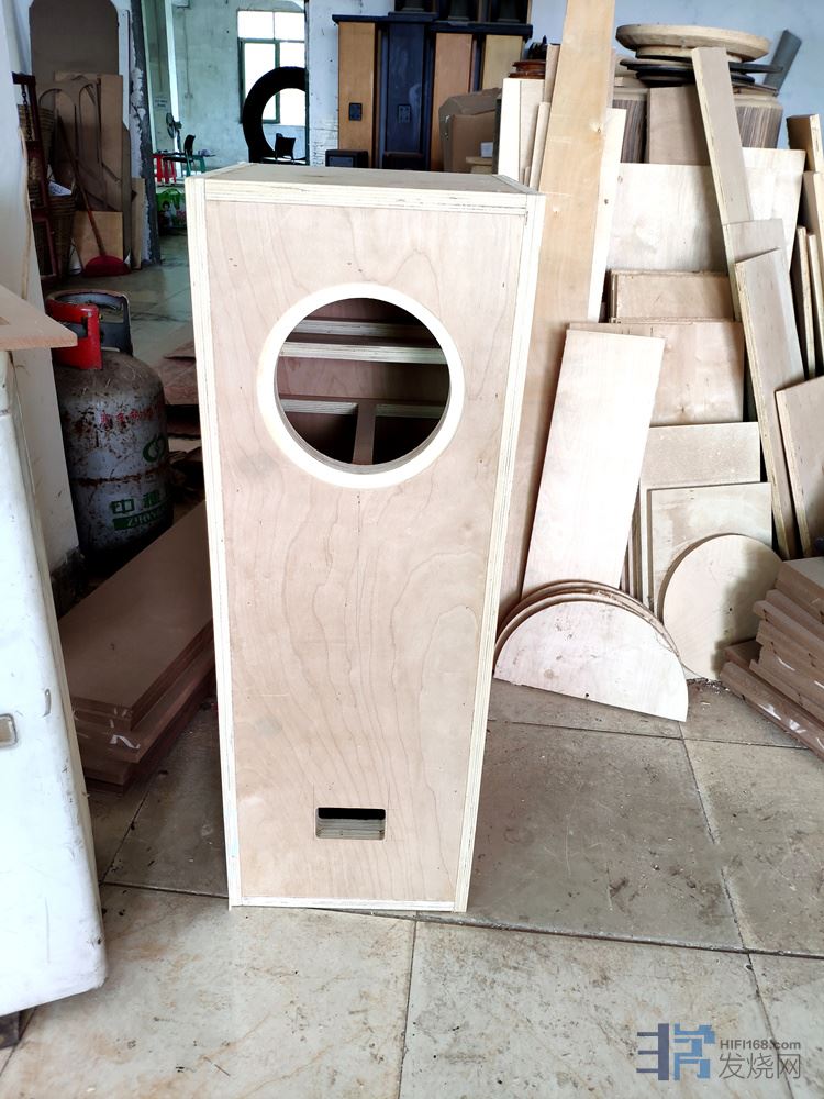 车间一角3:这只音箱是李老这次向我介绍的重点,箱体造型和制作都显得有些复杂,这样做下来,一对箱体成本不低吧: