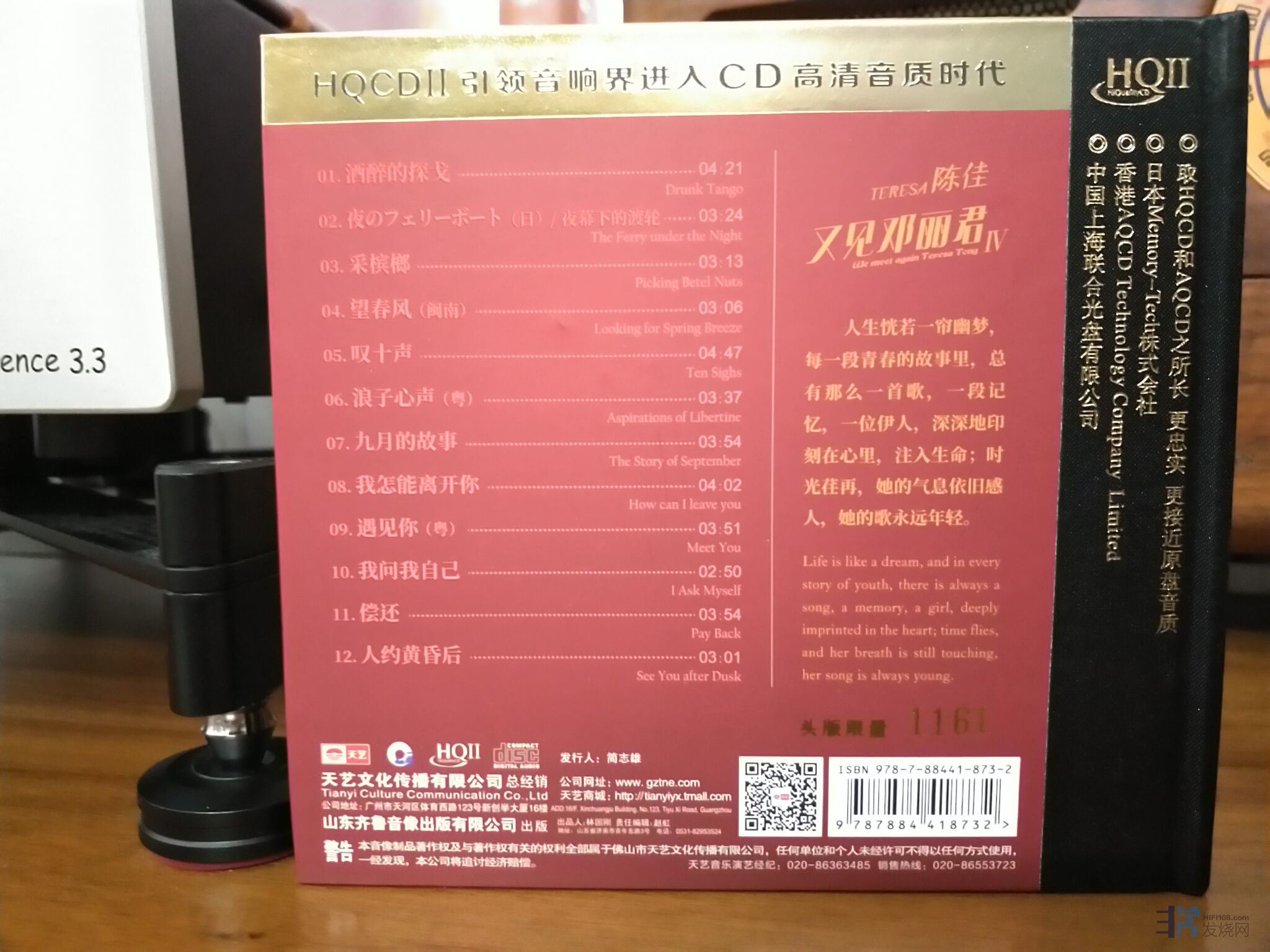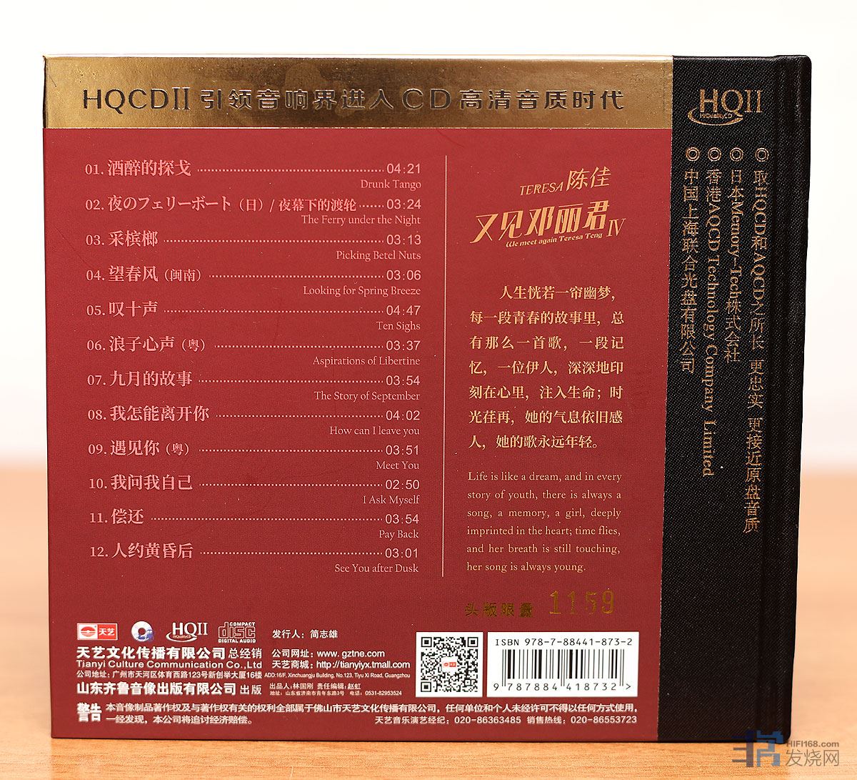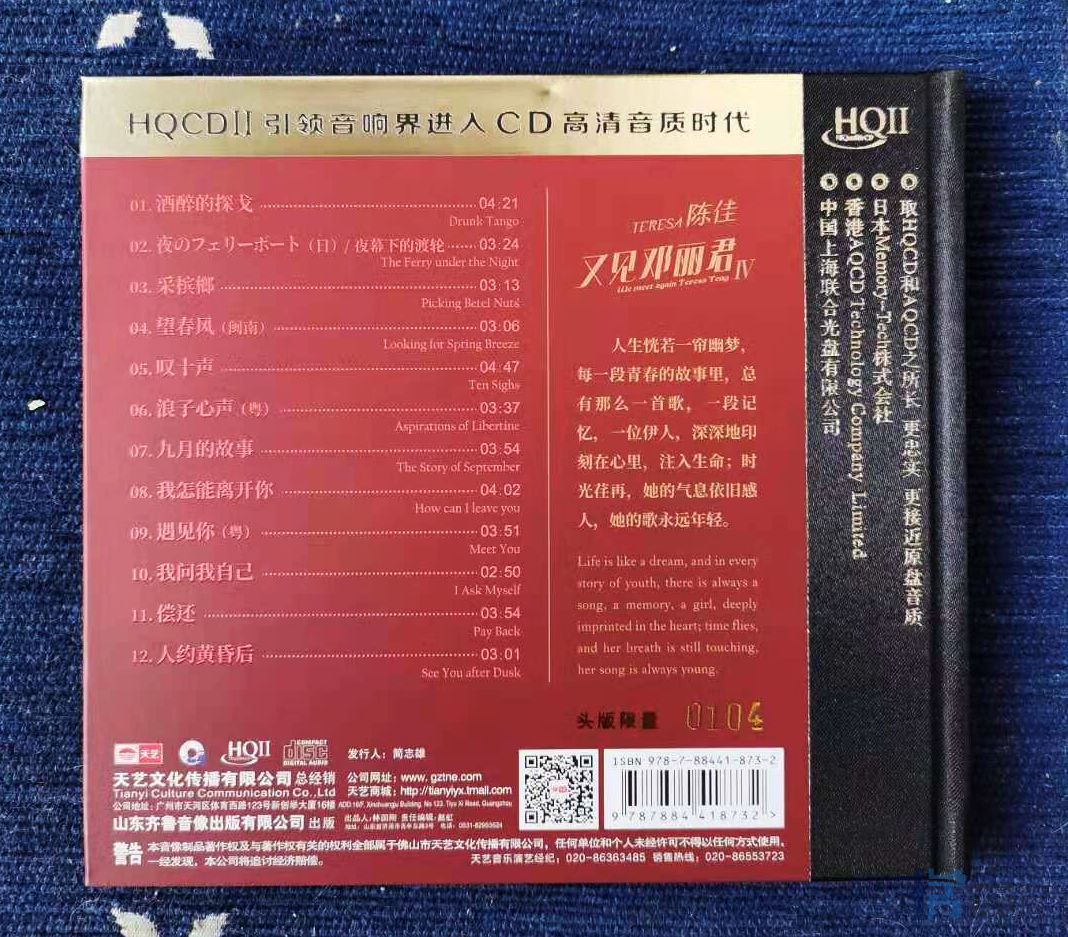 今日收到并欣赏试听了这张HQⅡ,声音的确真实清晰,又不会有《似是故人来》那张专辑的硬薄感,温暖了一点点,恰到好处。我曾买过第三辑的1:1,感觉HQⅡ已经有95%1:1的感觉了,但价格就便宜超过一半,因此这样的性价比很高了。 jmz 发表于 2020/12/25 22:32:44