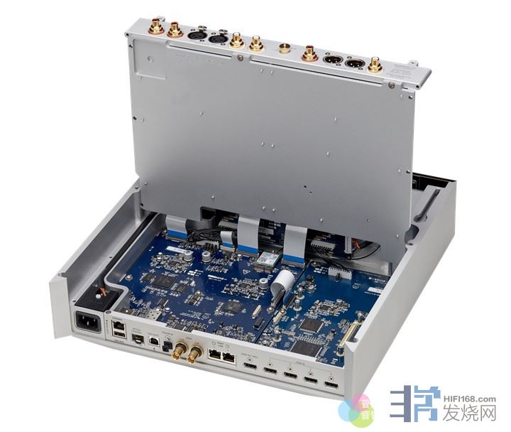 ▲Klimax DSM不仅拥有各类数字输入端子,还拥有四组HDMI输入端与一组eARC HDMI输出端。从背板可以看到分为上下二层,上层是模拟端子与模拟线路,下层则是数字端子与数字线路。