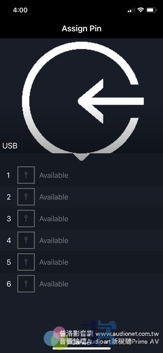 请点选Inputs,此时就会出现各种输入的图形,每个图形旁边都有⼀个别针的图形,例如您想将USB设定在快捷键中,就点选USB旁的别针,此时就会进入Assign页面,上面有1-6六个框,您要将USB放在第⼀个,就点选第⼀个框,这样就将USB设定在快捷键1了。其他五个依此类推。请注意,在上述的Inputs中并没有串流的选项,要播放串流,就直接点开Tidal(举例),依照串流的播放方式就可以播放了。